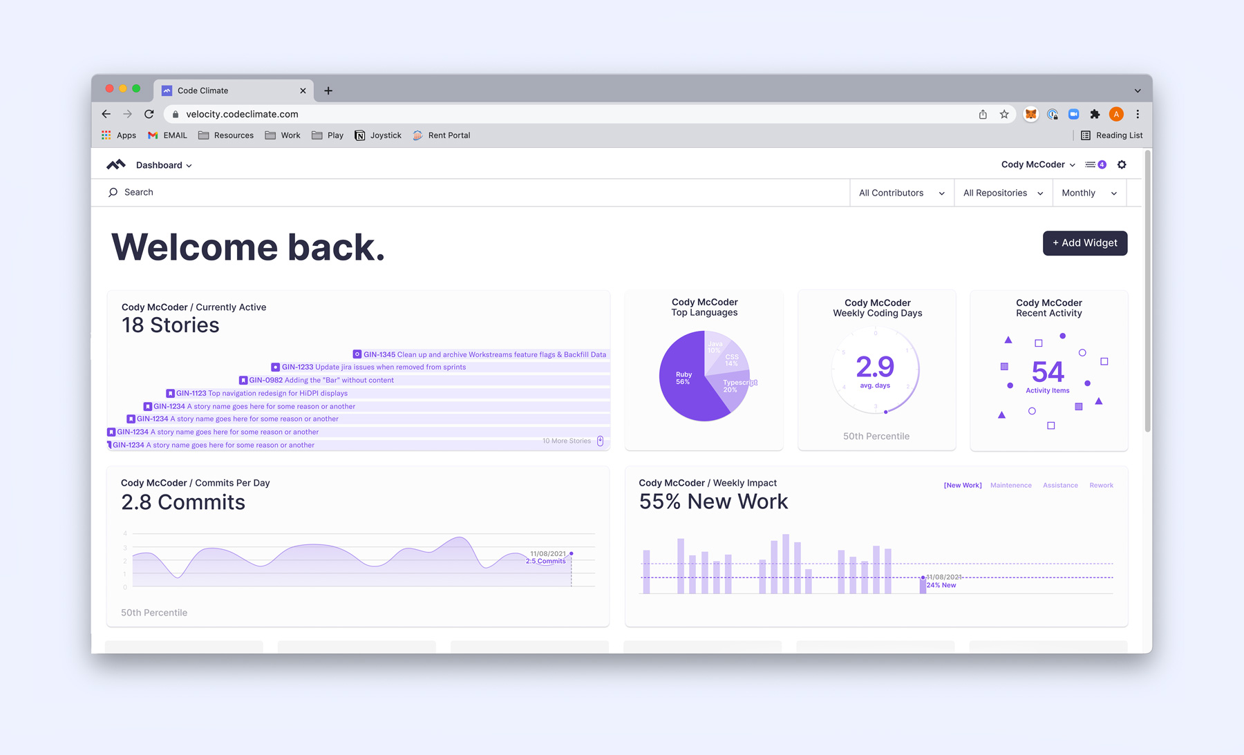 We're currently helping Code Climate build out a new dashboard concept. The idea was users decide on how their dashboard looks and functions by choosing from pre-made widgets that measure activity differently. The widgets would undoubtedly perform well, as they were just redesigned aspects of the current application. The problem was that users wouldn't know which widgets to choose for their dashboard particular to them. Giving the user choice could be more confusing than helpful with a wide array of metrics and measurements. Developers could be missing key metrics to help their code.
